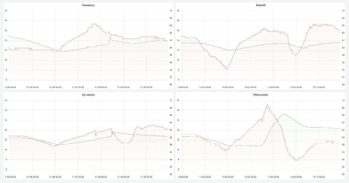 Tutustuin hiljattain ajatukseen älykkäästä kuivanapitolämmityksestä. Sähkön hinnan nousun myötä halusin päästä kokeilemaan konseptia. Ruuvitag-sensorien data olisi siis saatava talteen pilveen ja sieltä yksinkertaisen API-rajapinnan kautta edelleen ohjauslaitteelle. Sopivan ratkaisun puuttuessa syntyi työkalu RuuviTag-sensorien datan tallentamiseksi Internetissä sijaitsevaan tietokantaan.